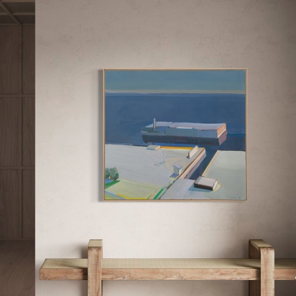 Raimonds Staprans is a contemporary Bay Area painter known for his depictions of fruit, chairs, and architecture. In a similar vein to the work both and Richard Diebenkorn, Staprans employs flat planes of color to create form and light.