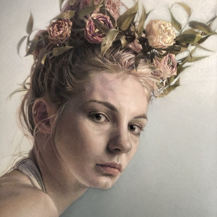 In my art, I create a space for personal connection, inviting viewers to interpret and engage with their own experiences. Rooted in my history, my work evokes feelings of sadness and introspection. I created and use a unique technique, embedding dry materials onto paper with sandpaper, to explore light and shadow in realistic portraits. Each piece reflects my personal connection to subjects, mainly my daughters, and is titled simply to allow open interpretation. As authentically as possible, I curate compositions to evoke specific emotions and incorporate props to enrich narratives. Ultimately, my art serves as a visual diary, reflecting my journey and inviting dialogue about universal human experiences