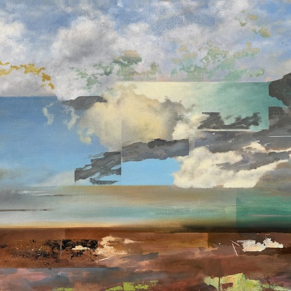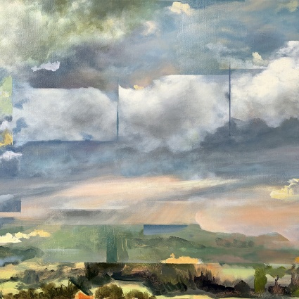 With glitch-like forms and soft color palettes I try to capture the sensory overload we live with daily - not just digitally, but environmentally. The work echoes the visual and auditory noise that surrounds us, as well as the real pollution seeping into our natural world. Fragile, flickering elements speak to the way beauty and degradation now coexist. This body of work reflects a dual reality: one of quiet longing, and one shaped by chaos - both manmade and environmental."