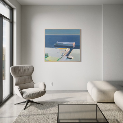 Raimonds Staprans is a contemporary Bay Area painter known for his depictions of fruit, chairs, and architecture. In a similar vein to the work both and Richard Diebenkorn, Staprans employs flat planes of color to create form and light.