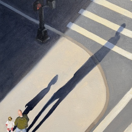 "The voyeuristic perspective in my artwork captures the emotional tension between isolation and connection, shaped by my reflections in the wake of 9-11. Observing life from elevated viewpoints, such as windows or bridges, I create a sense of detachment that emphasizes physical and emotional distance. At the same time, my curiosity about human behavior fosters a sense of connection.