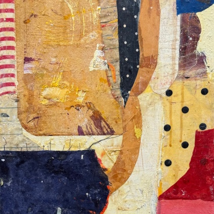 Pareidolia. I don’t think in terms of specific explanations in painting and my paintings are not preconceived. They inhabit their own cosmos and attempts to decant their essence are vexing. I don’t want to limit the paintings to any one interpretation. Visually, I’m interested in the edges of things in nature and painting, where one color cozies up to another and where a shape ends and another begins. In a formal sense, I’m attracted to colors that are hard to describe and forms that seem to relate to each other in a "Rube Goldberg" arrangement and are enigmatic. Frequently when the painting is complete, I find hints of landscape, interior or figure. Although there are no stories, this faint murmur of narrative is suggested by that which is "found" by our need to discover patterns and objects in nature; like a lion in the stars or a bunny in the clouds. In my work the translucent layers of oil paint paired with cold wax and resin, provide a nonspecific or ambiguous discovery of forms.